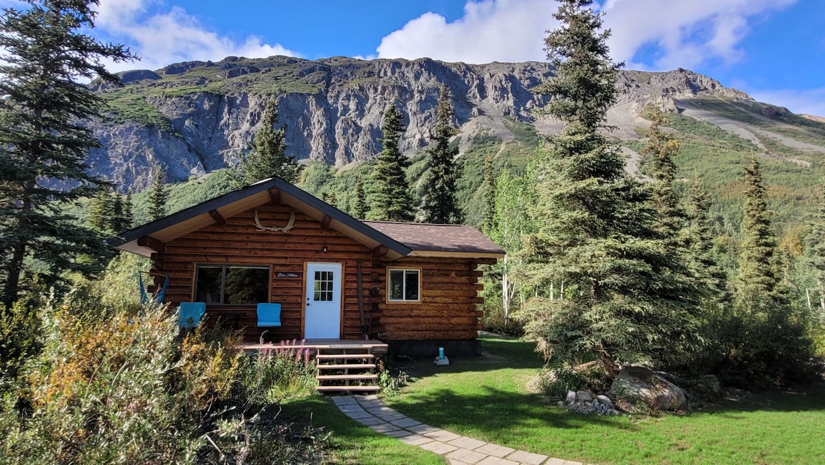 Watch wild Dall Sheep graze on Sheep Mountain from your bed in The Blue Moon cabin at Little Bear Getaway Cabins, conveniently located 15 minutes from the Matanuska Glacier, surrounded by breathtaking mountain views. Clean and cozy, this authentic, hand built log abode has one queen and one twin bed, trundle bed, kitchenette with refrigerator, microwave, toaster, dishes, cutlery, table, and wifi. Blue Moon also boasts a new ensuite bathroom with sink, flush toilet, bathtub, and shower.