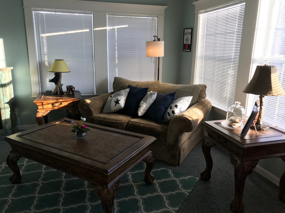 Private entrance with a large entryway with room for luggage, coats, shoes, etc. The large bedroom has a comfortable lounging area with a futon. The bathroom and common room are for your private use and are not shared. Laundry facilities are in the basement. Deck with a view of channel! Our home is located in downtown Juneau just behind the governor's mansion. It's just a 5 minute walk to the Capital building and downtown shops & restaurants!