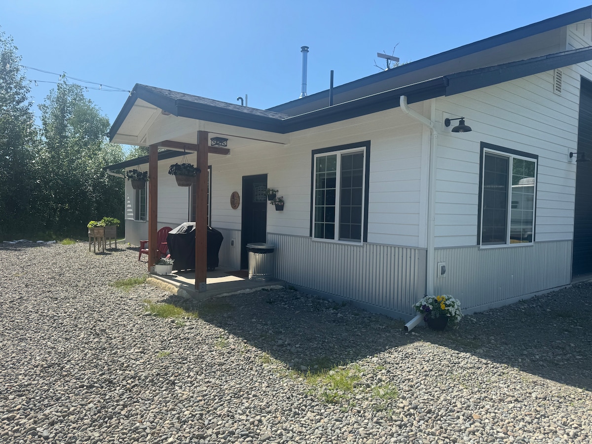 One-of-a-kind property in a one-of-a-kind place. This cozy, detached guesthouse that overlooks the Mat-Su Valley from iconic Lazy Mountain. Includes a huge new covered deck where you can enjoy the unobstructed views from the barrel sauna and hot-tub while protected from the elements. 2 bedrooms, 1 bathroom, steam shower, full kitchen, open living room. Pull-out queen couch can sleep additional two guests. *Winter months, AWD is a must. Garage is not for guest use.