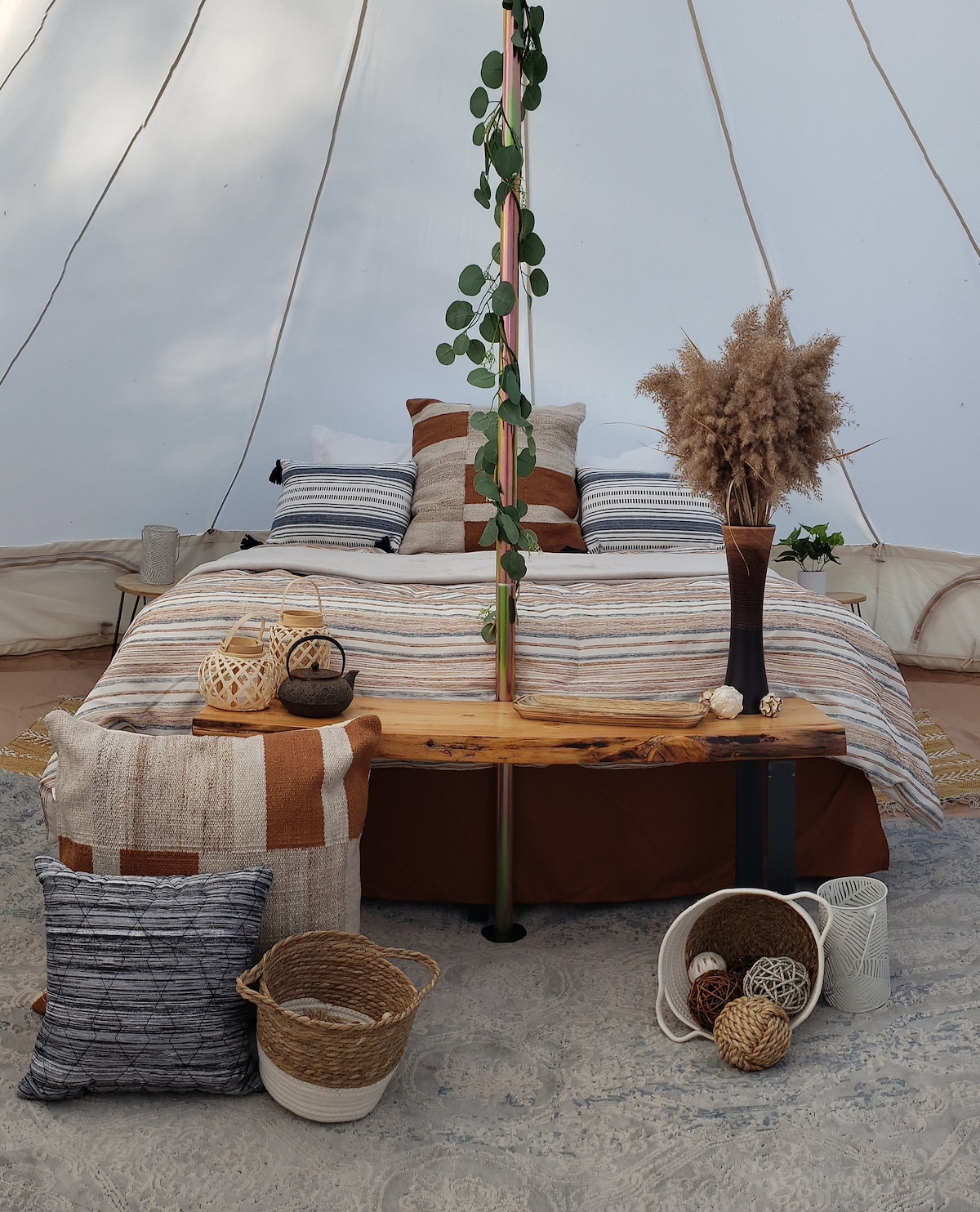 Reconnect with nature at this unforgettable escape. Located on the river's edge of the Knik River in Palmer, Alaska, our glamping tents offer a unique experience. Unplug, unwind and kickback in our canvas style bell tents. Each tent is stylishly outfitted with a queen size bed, linens, rugs, stylish decor and other amenities. Only 45 minutes north of Anchorage, our location boasts incredible views with access to all things outdoor! Also perfect for micro weddings, retreats & small gatherings!
