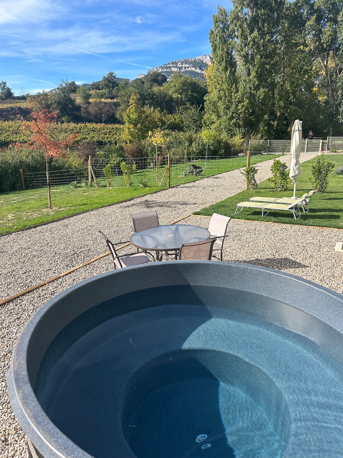 ALDAPA BI·CASA con PISCINA en el centro de Rioja Alavesa· EXTERIOR con JARDIN PRIVADO que cuenta con -BARBACOA -zona de COMEDOR EXTERIOR -zona de HAMACAS desde los que se divisa un mar de viñedos -HOT TUB para disfrutar en ella de unos baños calientes al aire libre INTERIOR -cocina y baño equipados al detalle -zona amplias y con gran ventanal comunicado al JARDIN Muy bien conexionada con ciudades principales Vitoria, Logroño, Bilbao, San Sebastián, Pamplona ... *num. reg. XVI00159