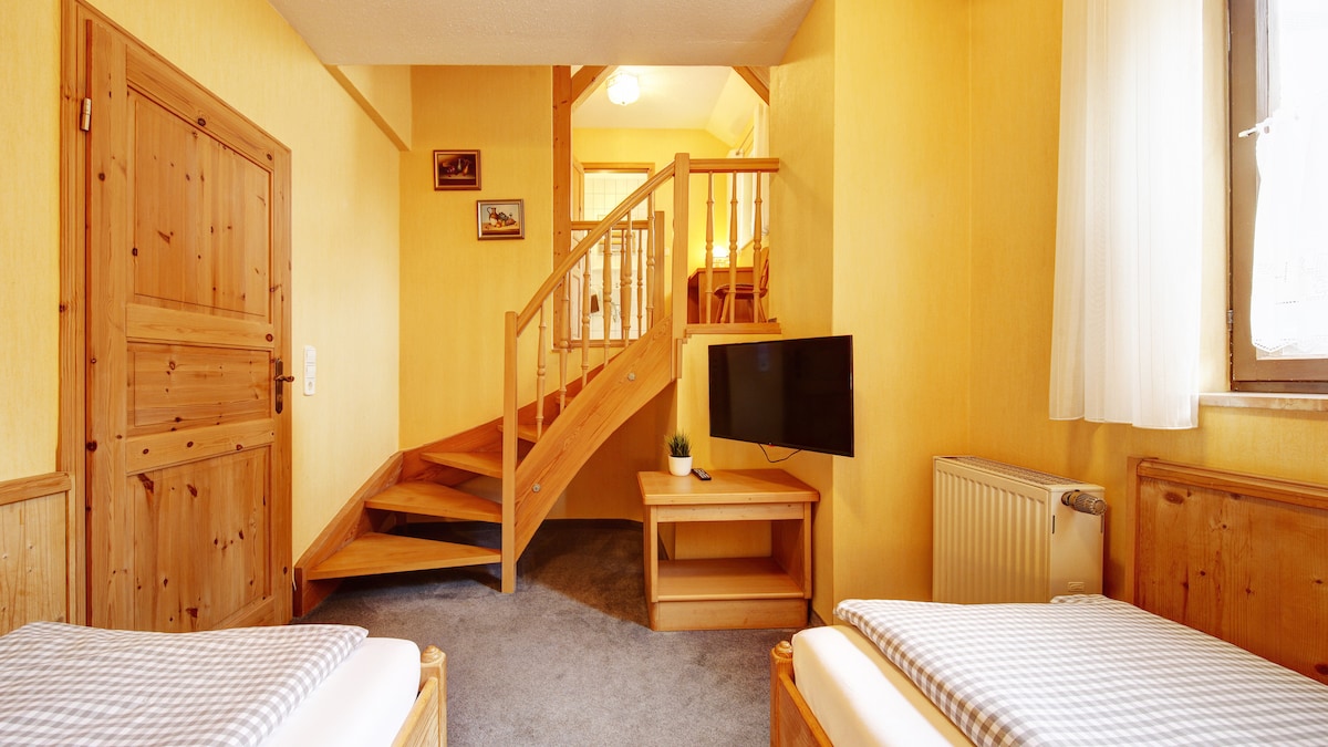 Dieses Zimmer miteinem Bett 160x200 und drei Betten 90x200 verfügt über ein eigenes Badezimmer mit einem Haartrockner. Die meisten Zimmer im LeoMar sind Nichtraucherzimmer. Raucherzimmer sind auf Anfrage verfügbar. Dusche WC Handtücher Haartrockner Schrank Allergikerfreundlich Ventilator Kühlschrank Schreibtisch Telefon Radio Flachbild-TV Kabelkanäle Weckservice Parkplätze: Private Parkplätze stehen kostenfrei in der Nähe (Reservierung ist nicht erforderlich) zur Verfügung.