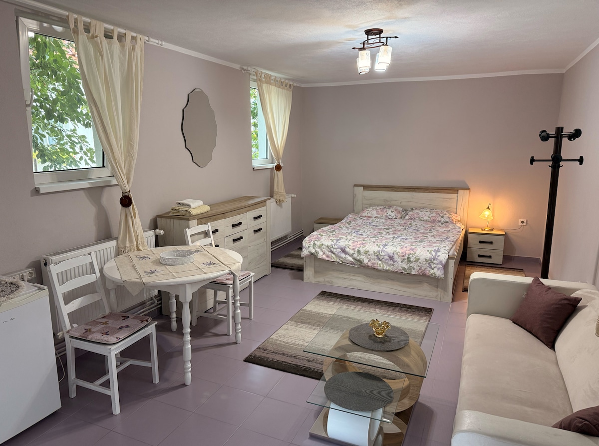 - Free Parking 🚗 - Downtown location 🏙 Cozy double bed 🛏 studio in the center of Alba Iulia, less than 5 minute walk 🚶♂️from the famous 1st Gate of the beautiful and historical Alba Iulia Fortress🏰. Surrounded by restaurants, bars🍸and cafes☕️ boasting traditional Romanian🇷🇴 and international menus🍝. The studio is situated in a recently converted building🏠 situated at the back of a private property, allowing privacy and peace from the bustling city 🌆 Perfect for short touristic trips