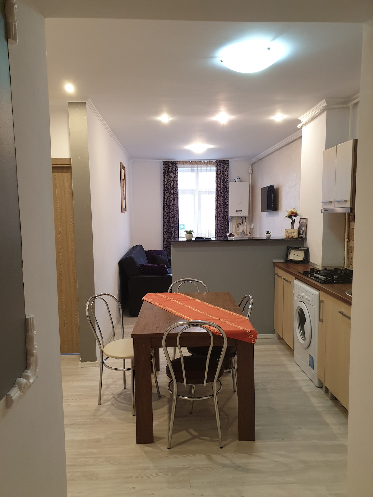 Carefully renovated apartment in an 18th century building, tastefully decorated with Romanian art giclees from Brukenthal's collections. Amazing woodwork that has been carefully renovated to the original look. Two minutes walk from Turnul Sfatului in Piata Mare. Spacious bedroom/livingroom, fully equipped kitchen, full bathroom and hall room with an impressive library.