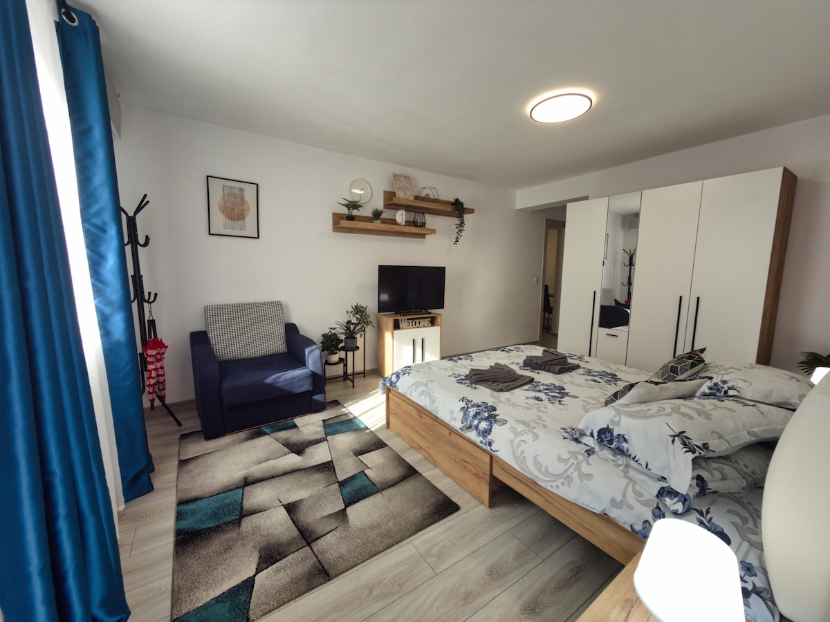 Discover your modern studio retreat in Sibiu! Perfect for a single person or a couple , this ground-floor apartment offers a quiet escape just a 15-20 minute walk from the historic center. Enjoy A/C, high-speed internet, a fully equipped kitchen, and a smart TV. Experience the perfect blend of comfort and convenience in a peaceful residential neighbourhood.