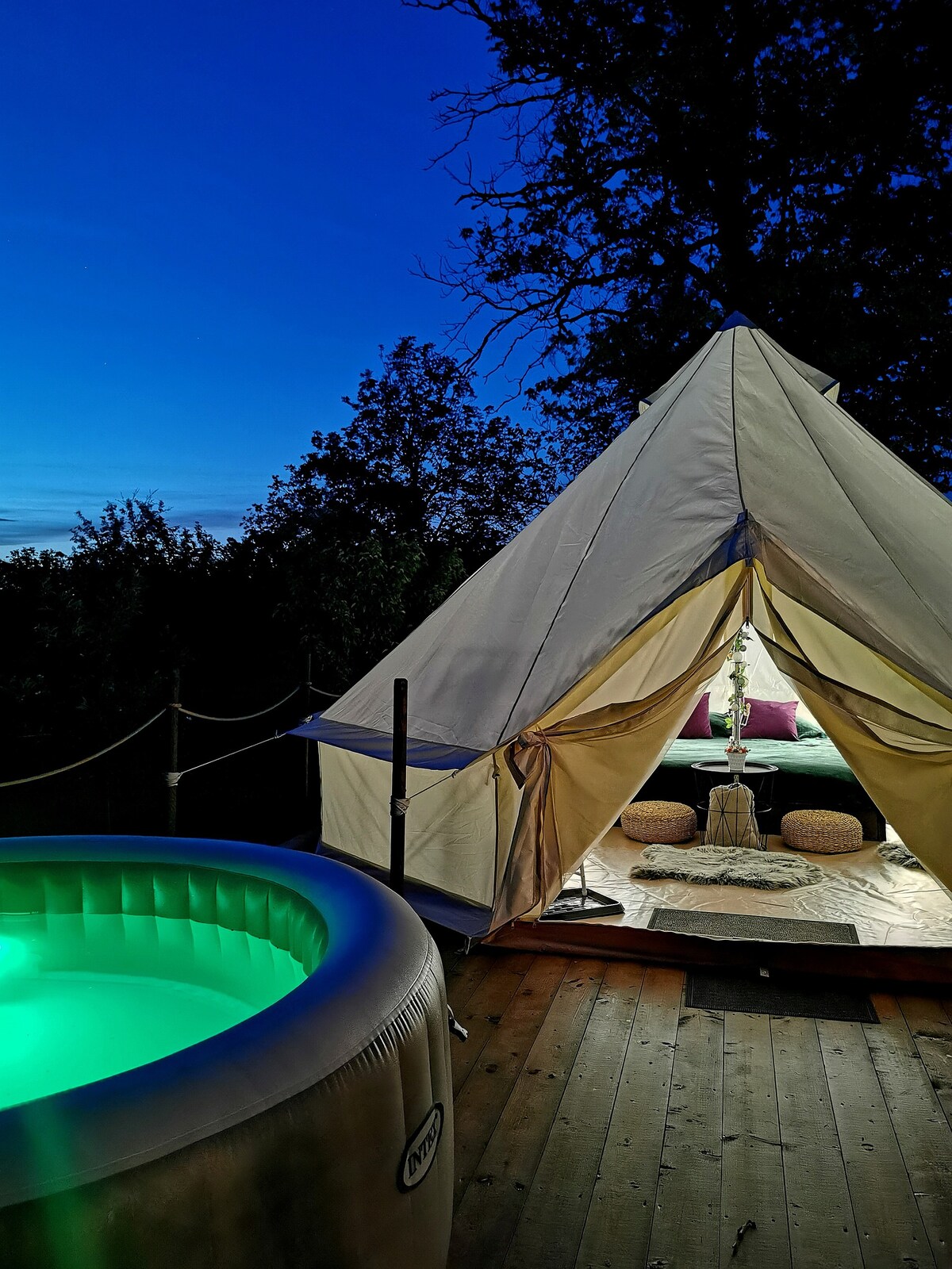 Cortul Rose din cadrul Green Garden Glamping Retezat este un cort glam in care experimentezi confortul unei cazări clasice în mijlocul naturii. Jacuzzi-ul privat situat pe terasa cortului iti ofera momente inedite de relaxare și răsfăț în mijlocul naturii. Aerul condiționat face ca și în zilele calduroase de vară sa te bucuri de confort.
