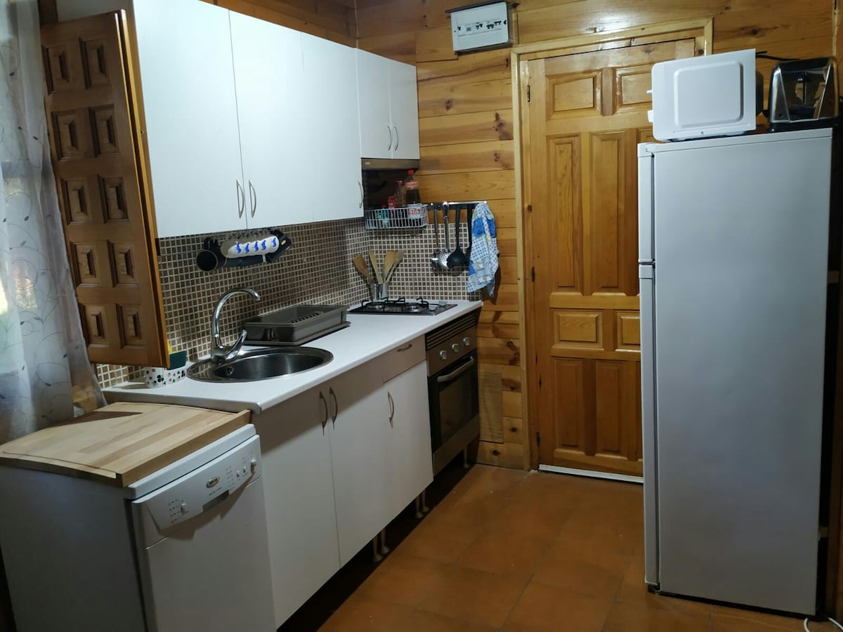 Dispone de salon-comedor con una chimenea, TV. con 2 habitaciones con camas de matrimonio, una cocina equipada ( microondas, nevera, etc) un baño y terraza con porche y barbacoa, está acristalada. dispone de calefacción, ropa de cama, toallas y menaje de cocina, en la cuál se puede ir al nacimiento del Río Mundo por una ruta de senderismo sin coger el coche, por cierto muy bonita.