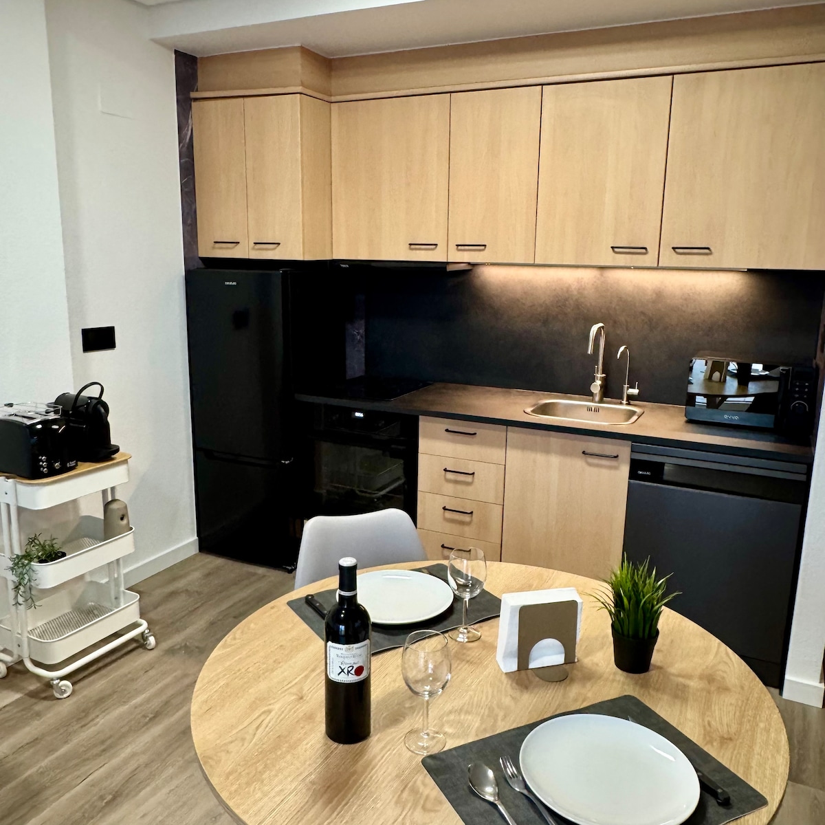 Luminoso apartamento en pleno centro de Albacete Con PARKING GRATUITO incluido en el precio ,muy cercano. Ubicado en la quinta planta con ascensor. Cocina totalmente equipada: vitrocerámica, horno, microondas, cafetera Nespresso (con cápsulas de cortesía). LavadoraSecadora para mayor comodidad. Salón-comedor con TV, mesa de comedor y sillas. Amplia zona de trabajo con espacio para portátil y enchufes. Aire acondicionado y bomba de calor en todas las estancias. Sábanas y toallas incluidas.