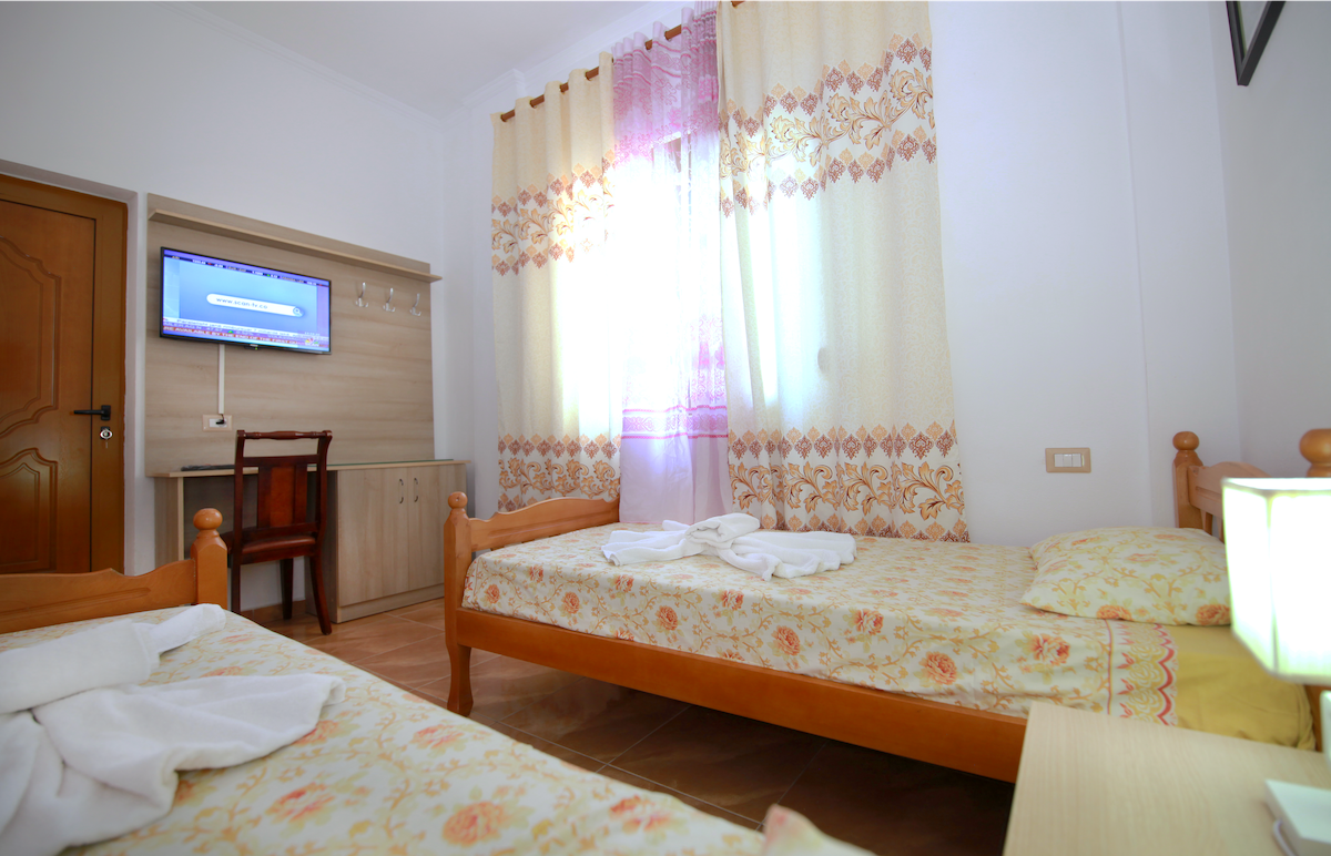 Our unique villa is situated at the Ionian coast of Saranda. Part of a compound of four villas, it offers a wonderful view of the sea with a direct exit to the beach. On the ground floor, there is a large living space with a fireplace and a bathroom. Three double rooms are located in the upper floor, while on the top, there is a bedroom linked to a stunning veranda. Surrounded by a careful gardening touch, our villa becomes the perfect place for those who need a peaceful state of mind.