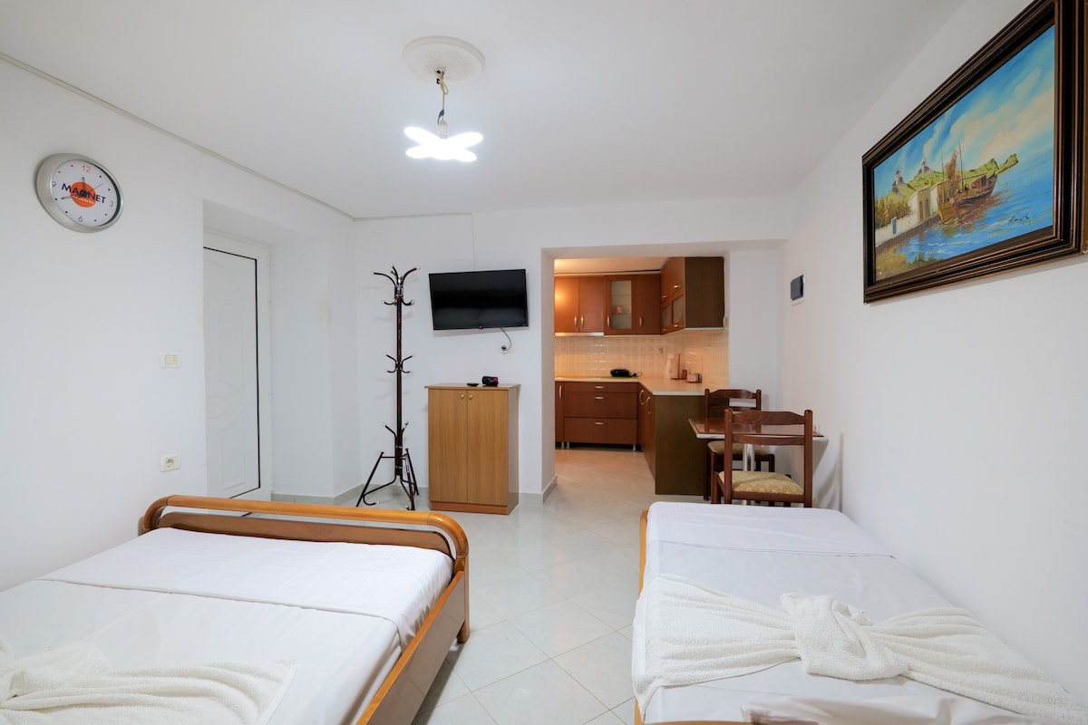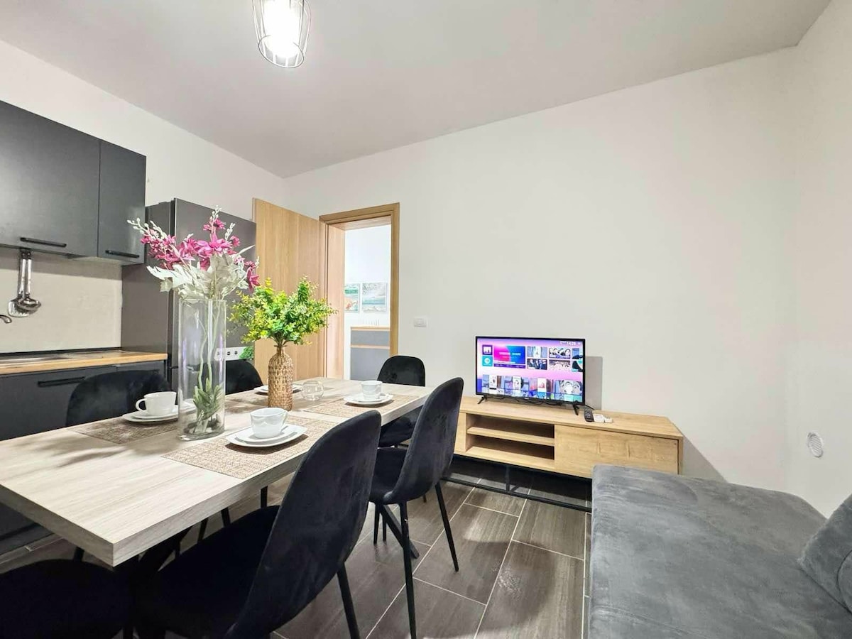 Brand new charming apartment in a nice and quiet area.Situated in the most attractive place of Vlora,Uji i Ftohte, and only few minutes walk distance from the most famous beach of the city,close to the new Lungomare. Free private parking is available in the place every time. É un nuovo appartamento, situato nella migliore zona della città, vicino a Lungomare e pochi minuti a piedi dalle spiagge vicine di sabbia e roccie. Καινούριο διαμέρισμα, στο καλύτερο πόστο της Αυνλονας, Κρύο Νερό.