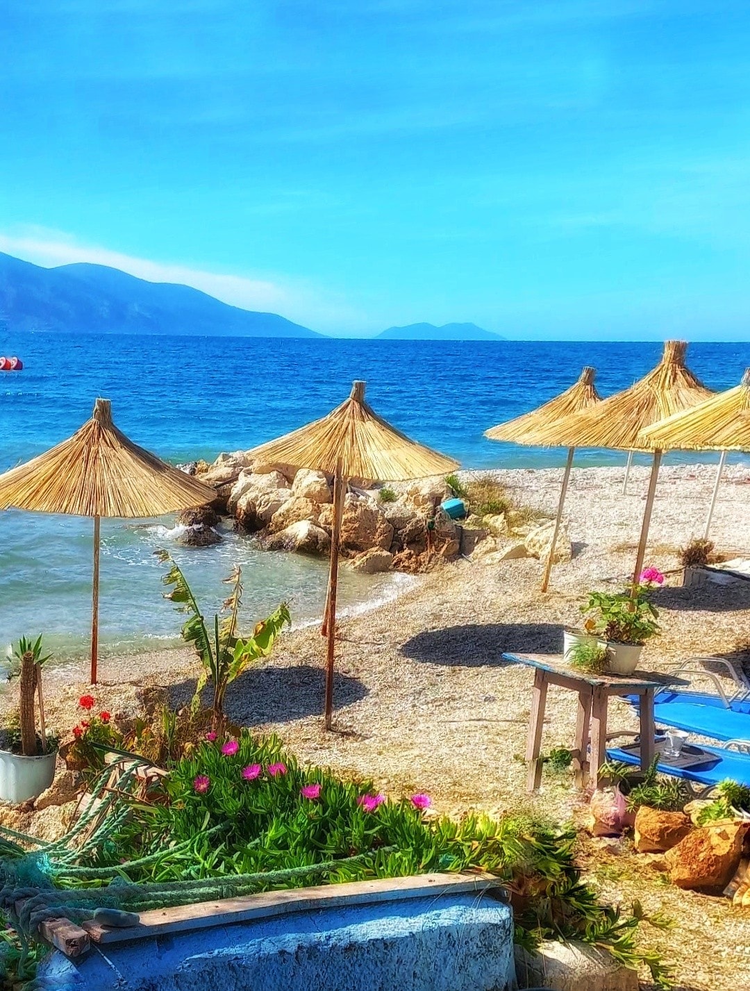 Romantic Retreat in Himara Cozy apartment ideal for couples, just a 7-minute walk from Himara’s center and the beach. Enjoy a private balcony with stunning views of a pine-covered hill, perfect for morning coffee. The space includes a comfortable room, modern bathroom, and access to a shared outdoor kitchen. Experience a peaceful getaway close to nature and all the town’s amenities. Create unforgettable memories in this charming spot!