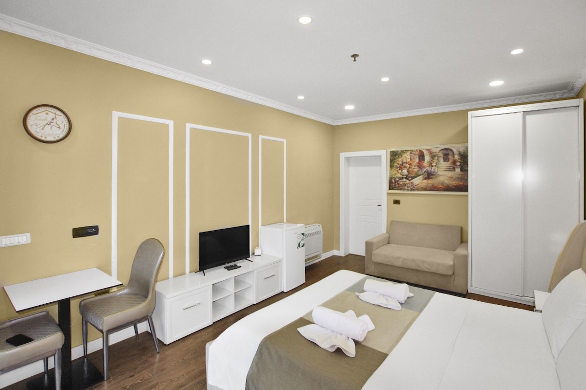 Relax in our spacious double room featuring a comfortable double bed and a private Jacuzzi for ultimate comfort. Enjoy free Wi-Fi, air conditioning, TV, and a modern bathroom. Perfect for a romantic getaway or a relaxing stay close to the sea.