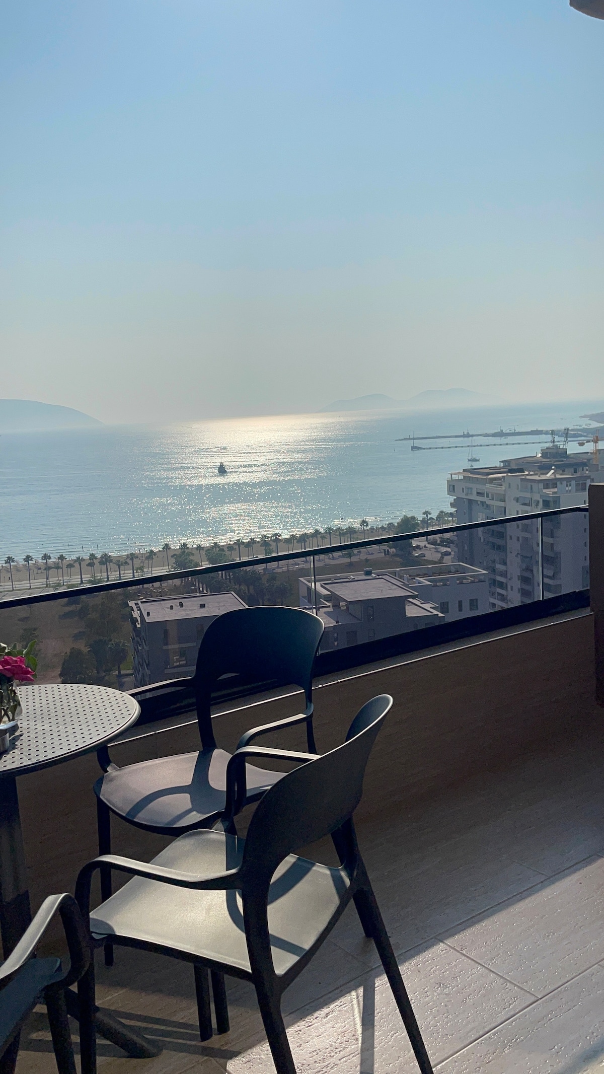 A charming and stylish top floor apartment with breathtaking views - the panorama of Karaburun over the bay and captivating Llogara view at entry. Enjoy the utmost comfort and privacy with a queen bed adorned with Greek thick cotton sheets and a delightful canopy. The living room features two single beds, perfect for lounging or sleeping, designer furniture, the beauty of both sunrise and sunset, and a gentle wake-up call of chirping birds. Your unforgettable stay awaits in this retreat.