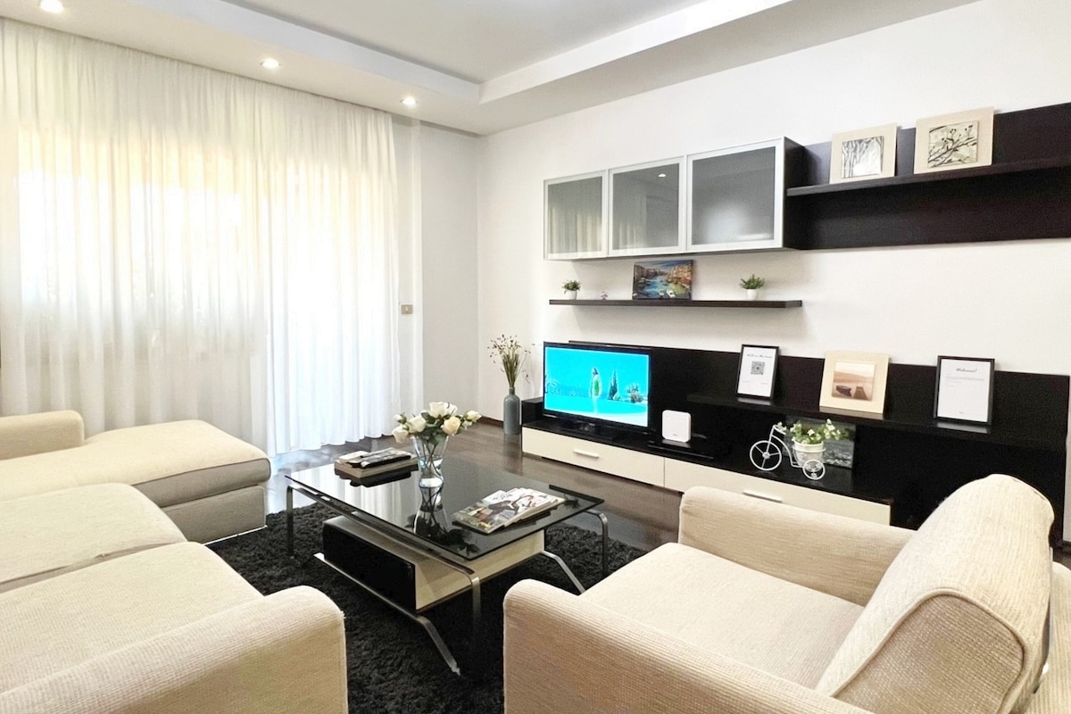 Dive in the elegance and luxury of this apartment. A unique and spacious place for everyone looking for a magic stay in Tirana. With an amazing location, just 800m from the center of the city and a 37 min drive from the airport, this apartment is the right place to spend your days and nights. Save this place for a special date. Enjoy your stay at Sia's Apartment!