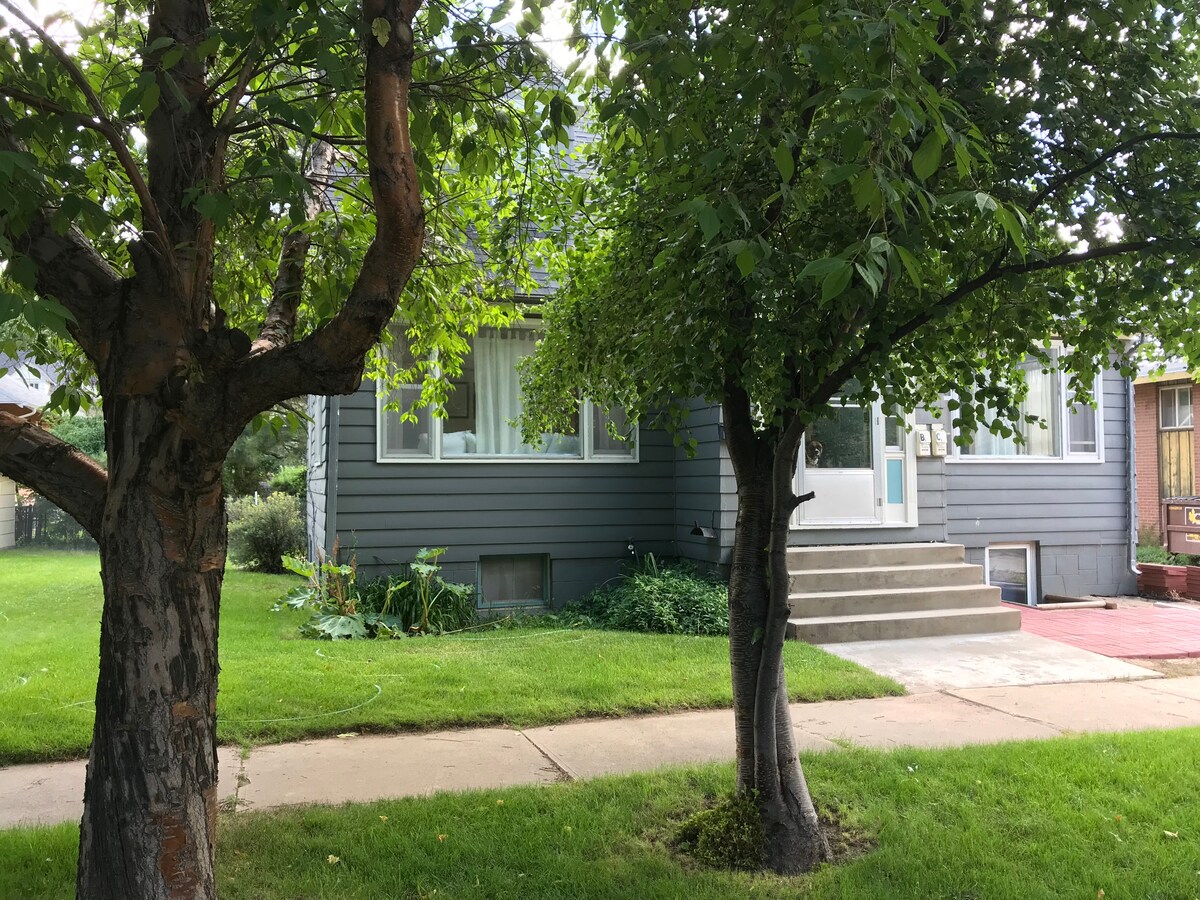 Enjoy your stay in this 1940s clean, cozy, charming, 2br, 800 sq ft cafe styled downstairs, private entrance location. One block from UW, Einstein Bagels. 4 min from downtown Laramie 7 min from a movie theatre & more dining. Smart TV with Netflix and Hulu accounts. Games available. NOTE: The living room heating unit becomes HOT when in use and creates an environment not for crawling age to 3 to 4 yrs. NO SMOKING NO PETS on property - we do have a well behaved Aussie Doodle upstairs.