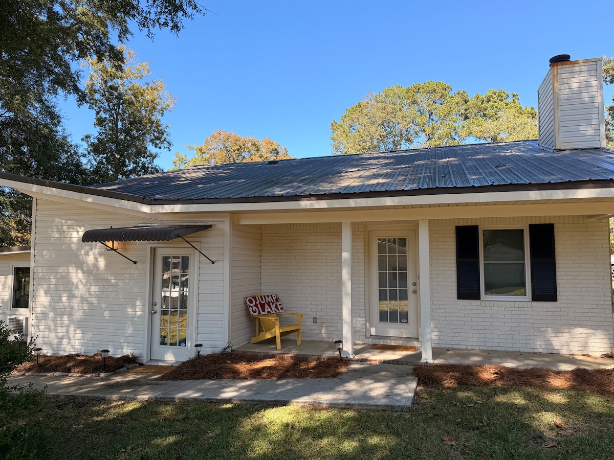 Relax & unwind in this cozy cottage nestled in the heart of luscious pine woods. This home was built with antique ash wood flooring, high-beamed ceilings, the warmth of a crackling fireplace, & a classically rustic character to achieve that charming, at-home feel. Kick back on the screened-in front porch during your stay for a “nurtured by nature” experience of sipping on a glass of wine while watching local wildlife roam, or listening to the pitter-patter of rain as it falls on the tin roof.