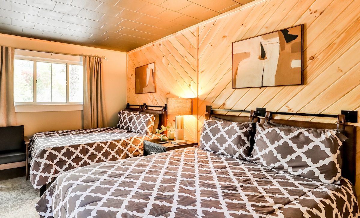Perfect for a family or friend getaway, this property features two luxury pillow-top queen beds, premium linens, a dining table and chairs for work or eating, a sparkling clean bathroom with a shower and a separate sink/vanity area, Roku Smart TV, and individually controlled AC and heat. Quiet, comfy, and comes with full access to East Rock Inn's outdoor dining tables and Adirondack chairs for lounging or enjoying your morning coffee while listening to birdsong. Only 1 mile to Ski Butternut.