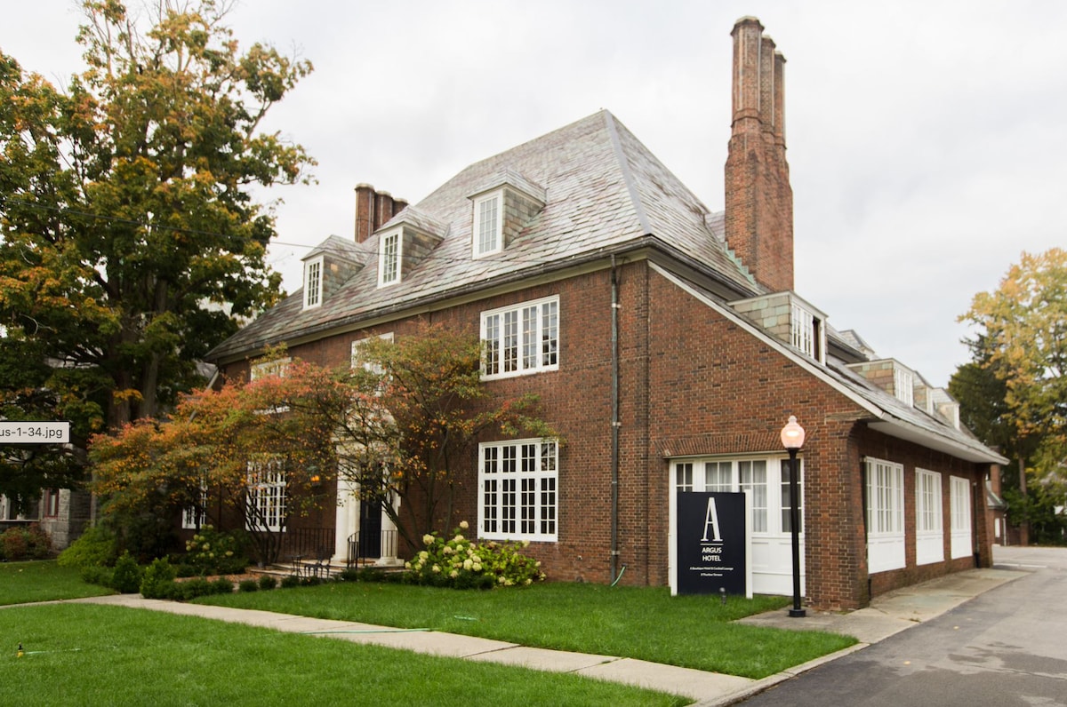 Hudson 4 is a first floor queen room with private bathroom. Each room is equipped with a SmartTV and Apple TV as well as a desk. This room is pet friendly. Complimentary Services: Continental Breakfast Onsite Parking Electric Parking Wi-Fi & Apple TV Keyless Entry Ensuite Guest Rooms Paid Services: Cocktails Meeting Space Rentals Pets (If applicable) Early Checkin (1PM) Late Checkout (12PM)
