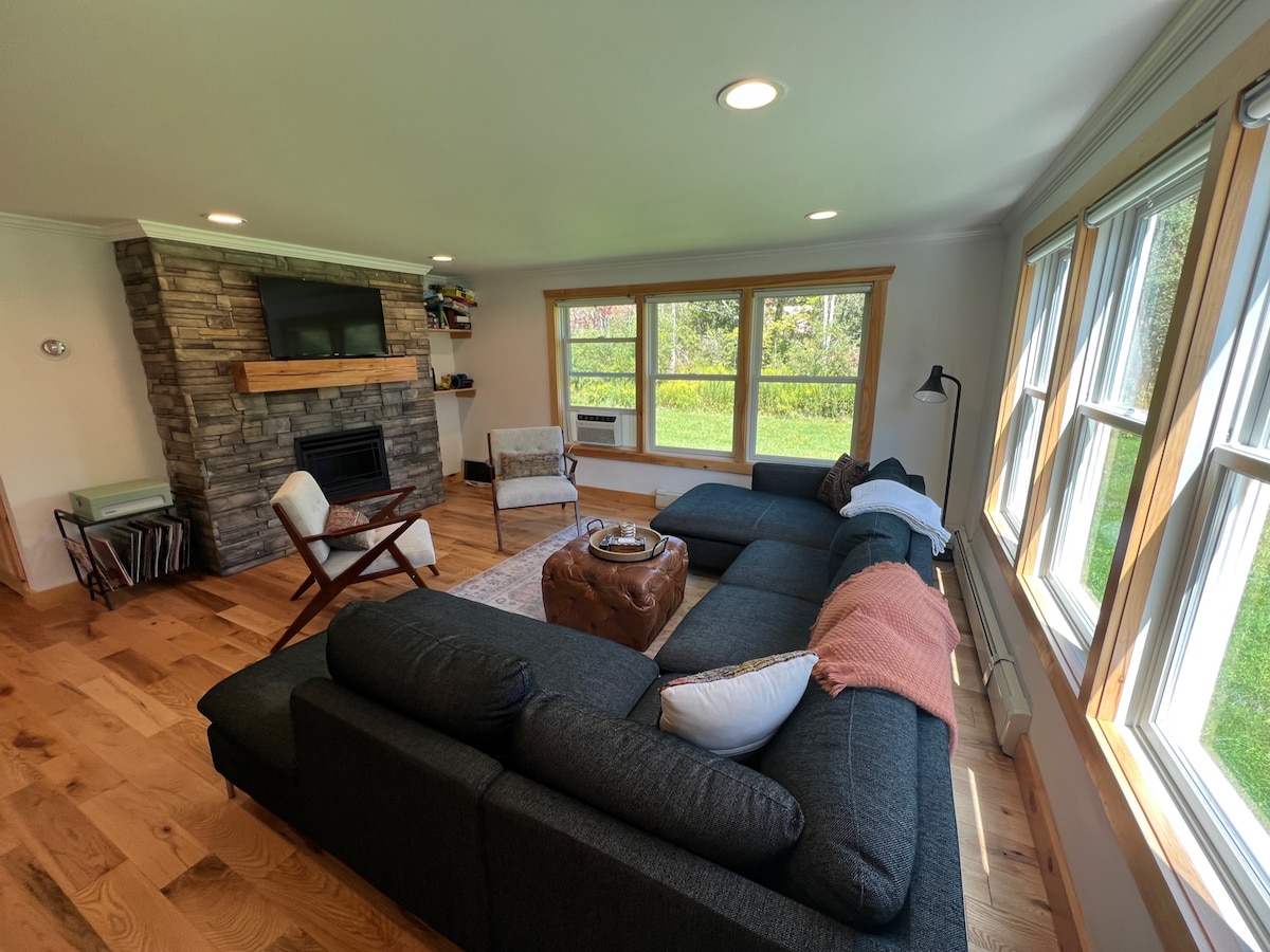 25 min drive to Jiminy Peak ski resort & 10 min to June Farms. Floor-to-ceiling windows in the lakefront great room. Relax by the fireplace or unwind in the cozy TV room. A spacious kitchen makes cooking easy. Upstairs: 4 bedrooms (2 king, 2 queen, all w/ desks) + 4 full baths (3 w/ showers, 1 w/ tub). Enjoy seasonal lake access, dock, and deck. Swim or kayak at your own risk- no guest boats at dock per insurance. Our lakeside getaway awaits! Airbnb has a strict NO Events policy which we follow.