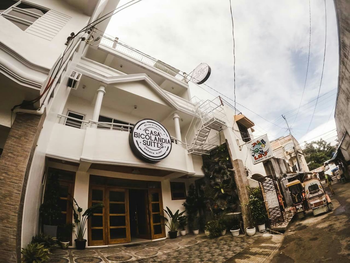 This is a 3-storey Hometel Suites in Daraga. Feel at home at this cozy and relaxing home that's overlooking the Mayon Volcano on the 4th floor. Casa Bicolandia has 12 bedrooms available (different prices). Single Room - 1,050/Night Double Room (2 persons) - 1,550/Night Double Deluxe( up to 4 persons) - 2,100/Night Family Room(up to 5pax) - 3,050/Night Family Suite Room (up to 6pax) - 3,550/night