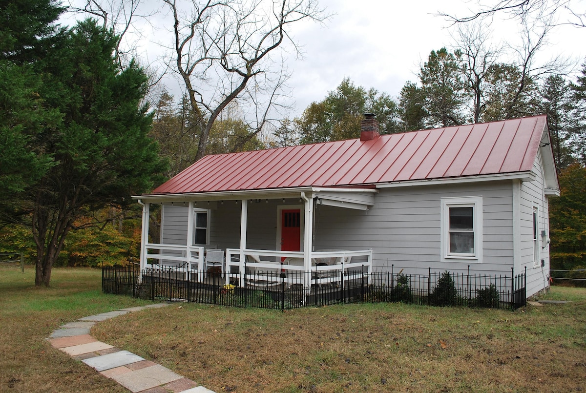 Peaceful retreat walkable to downtown Crozet (cafes, galleries, restaurants, yoga, spa.) One bedrm, now with Queen, clawfoot tub, stovetop, granite countertops, reclaimed barn wood features, visual electric "fireplace" focal point, and private deck. (Access to main house yard w permission each time.) One small non-shed dog on Nexgard with permission and fee. (Some other breeds with discussion and sweep on check-out.) We give winery tours thru CrozetTrolley. Main house next door for large groups