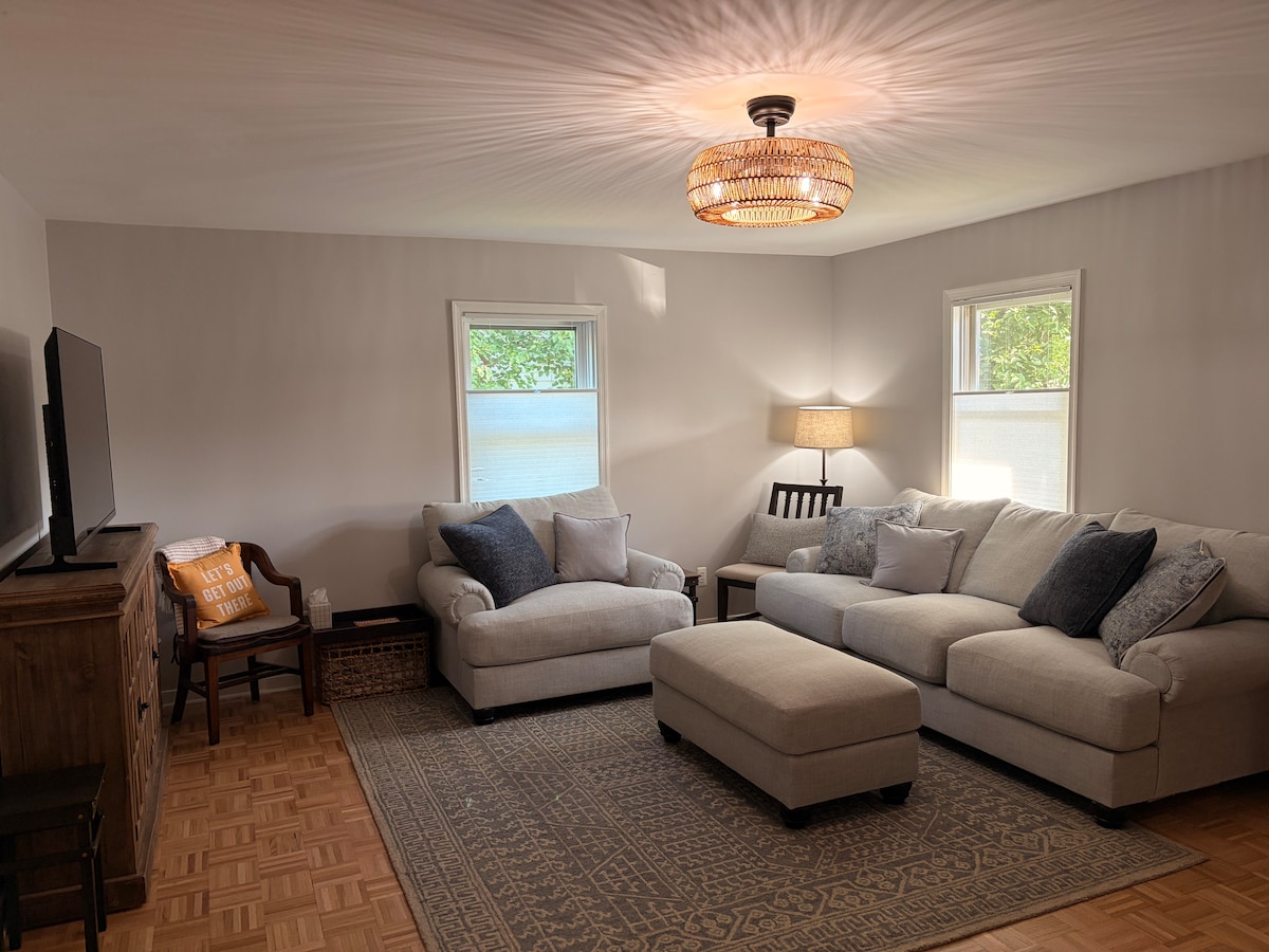 Park your car and leave it there since this flat is a 5 minute walk to Uva, 10 minutes to the downtown mall and less to West Main. It offers a lot of privacy with the help of surrounding trees and a rear entrance (opposite our house). Placed in the rear of our lot, it's perched above our studio/office and interestingly elevated above the surrounding lots and back yards. Completed in March 2022, the apartment includes high end finishes, tons of closet/storage space and no shortage of charm.