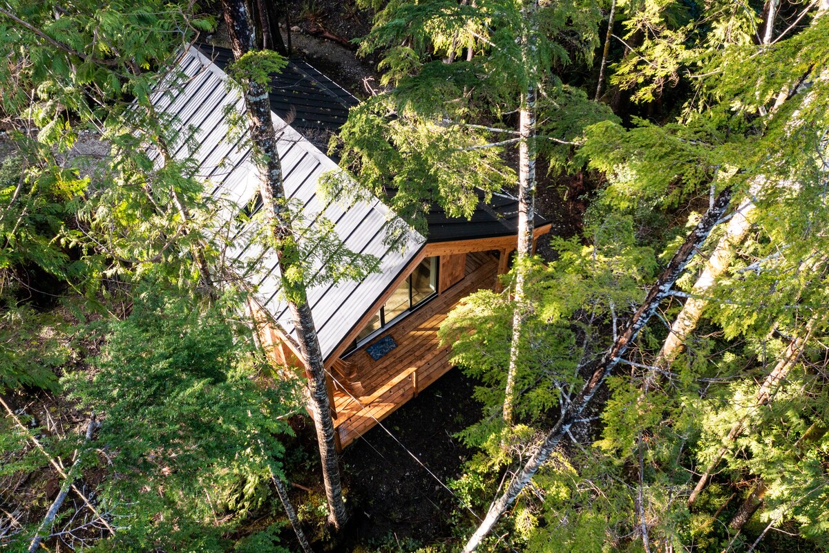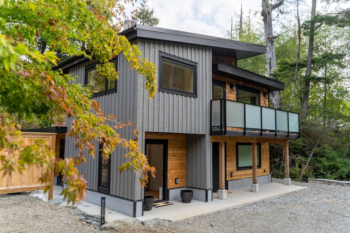 Welcome to Tofino Secret Spot - a cabin located centrally between town and the beaches; a stylish brand new build with all of your beach and tofino needs in mind. Get cozy in the two bedrooms with comfortable brand new queen mattresses. Enjoy a hot tea or coffee provided by the propane fireplace, and lookout into the forest view in the living room. The unit has a full kitchen stocked with all your needs.