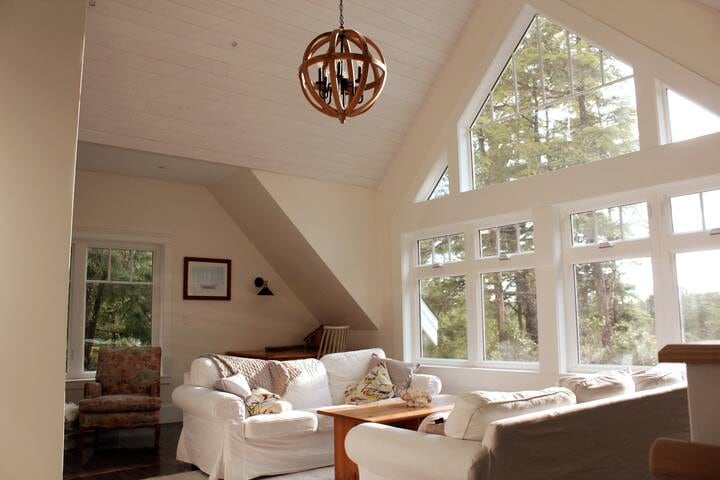 Bright commons spaces and bedrooms, walking distance to town, restaurants and shops. Views of Tofino inlet, and Bedwell sound.