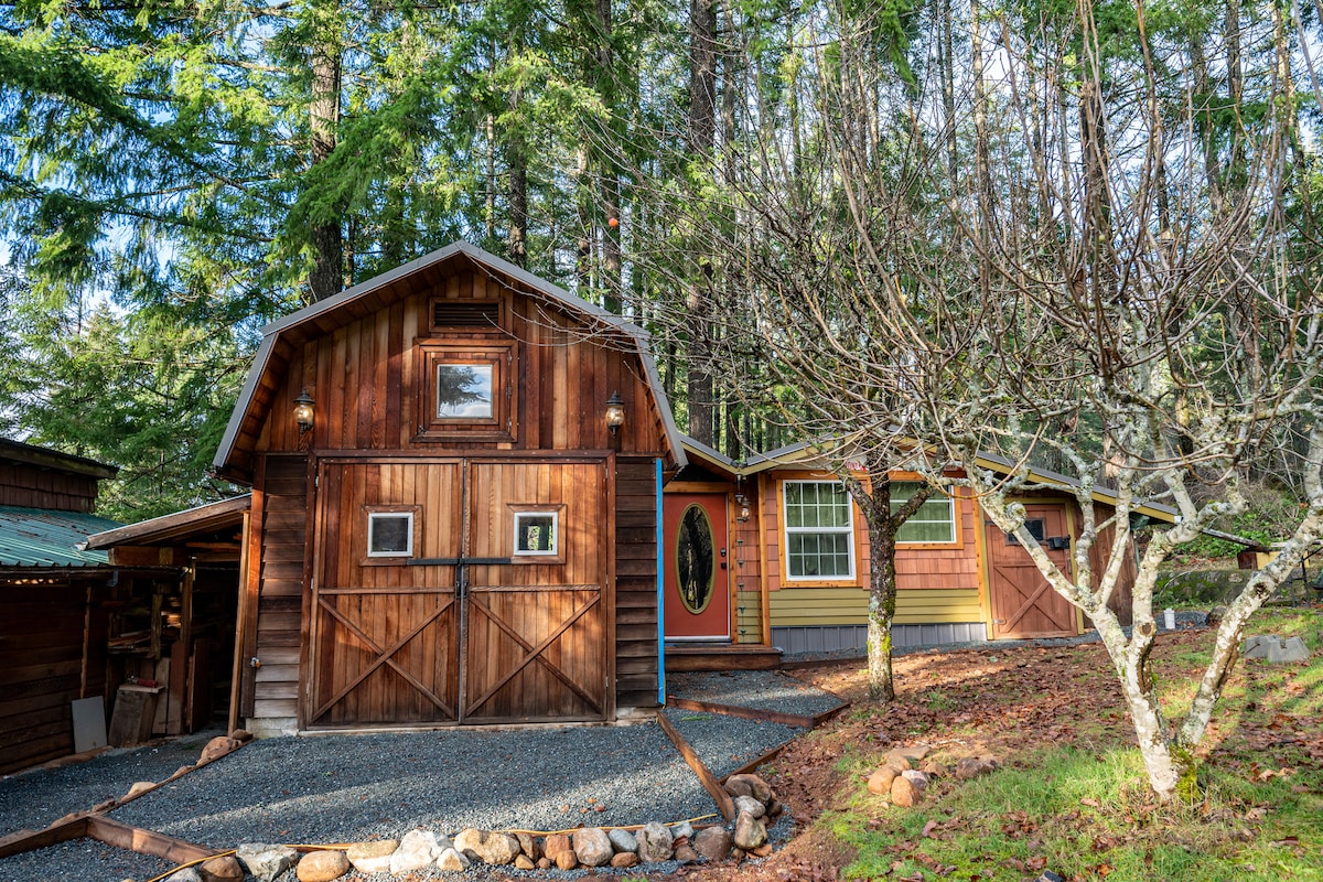 The “Porthole” cabin offers beautiful harbor views and a quiet retreat from the world. Enjoy the sunrise over the mountains and water in the morning and soak in the hot tub after a long day exploring all that the west coast has to offer. Our fully stocked kitchen lets you prepare your favorite meals. We supply refillable all natural/organic cleaning products and soaps for your enjoyment. EV charger available upon request for a fee. Perfect place to reset from the chaos of the world.