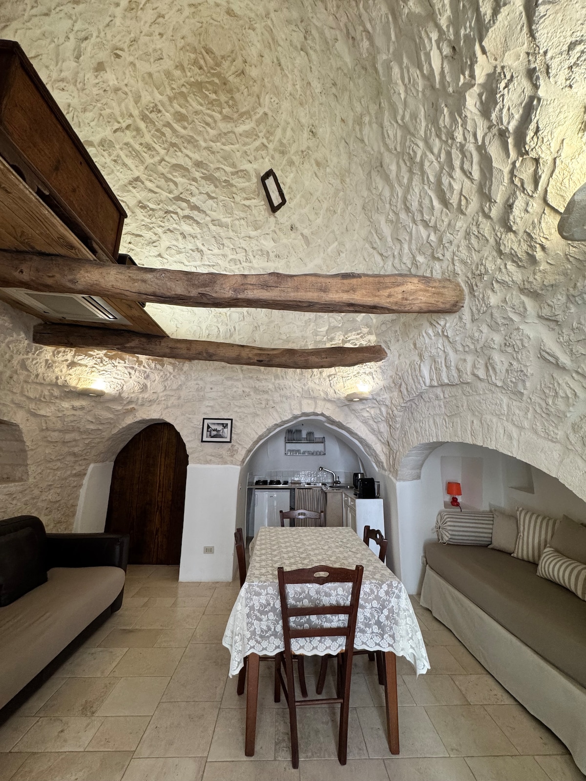 Se cerchi un luogo autentico dove rilassarti dopo aver esplorato i famosi Trulli di Alberobello, La Cantinetta è la scelta ideale. Accogliente, fresca e silenziosa, questa piccola casa vacanza conserva il fascino delle antiche cantine in pietra, con tutti i comfort moderni e ti offre la comodità di raggiungere il centro a piedi, ma con la tranquillità di una zona riservata. È il posto perfetto per coppie, famiglie o viaggiatori in cerca di un soggiorno autentico nel cuore della Valle d’Itria.