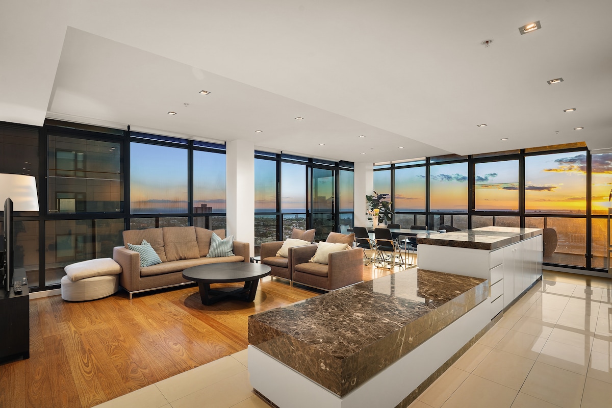 Welcome to my apartment with breathtaking city views. Nestled in the heart of Fitzroy Street, St Kilda, this urban oasis offers a comfortable stay for solo adventurers or couples. As you step inside you'll find everything you need from a well equiped kitchen and a living room with both a 2 seater and 3 seater couch and a 75inch TV. The master bedroom has a glass window wall allowing a dazzling city view from your bed. With its soft lighting and minimalist design, you will be well rested.
