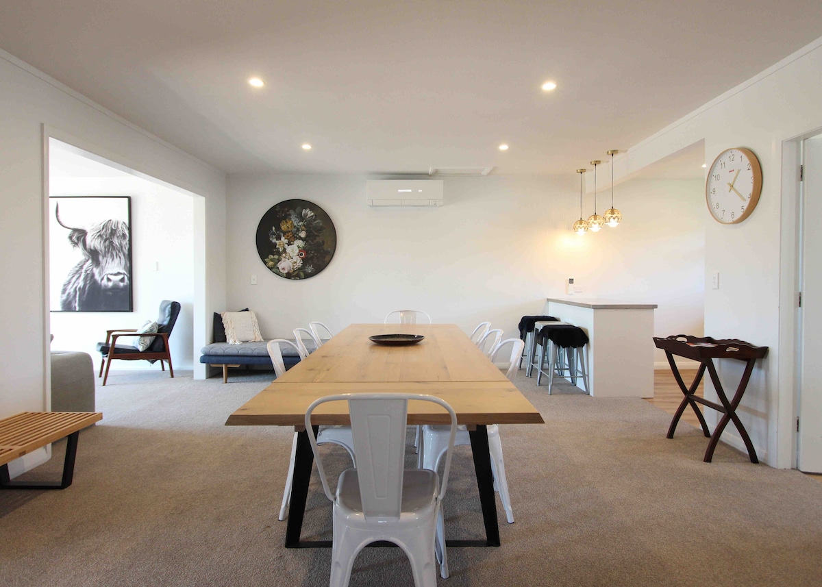 Welcome to acomo @ Alta, a stylish modern 3-bedroom, 2.5-bathroom home with two living areas. Enjoy stunning mountain views from the open-plan kitchen, dining, and lounge, or relax in the covered outdoor alfresco area with adjustable louvres & BBQ This stunning home is perfect for families or groups looking to experience the beautiful Wanaka scenery and outdoor activities. You're just a 5-minute walk to a playground, pump track, skate park, tennis court, café/bistro/bar, and convenience store