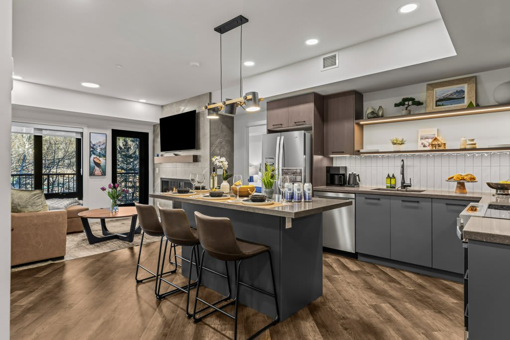 Escape to Arbor Nook, nestled among mature trees with a serene deck offering a light and airy atmosphere. Enjoy abundant in-suite amenities and easy building access. Prepare a gourmet meal in our well-equipped kitchen or savor nature's beauty with a BBQ. Situated in one of Canmore's premier resorts, Arbor Nook includes access to an indoor pool and hot tub for relaxation after your adventures. Only a 25-minute drive from Banff, it's the perfect base for exploring the Rockies.