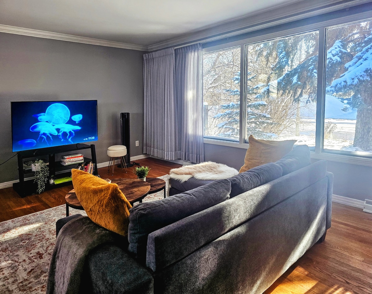 Kick up your feet in this serene slice of Canadiana. Nestled in a mature, walkable neighbourhood surrounded by trees and wildlife. A quiet getaway right in the heart of the city! Rest on QUALITY mattresses and linens. Dine & connect in 3 outdoor lounge areas in the private fenced yard. Pets welcome. You’ll greet the days feeling rested and refreshed. Coffee lovers rejoice! Keurig, Nespresso, French press or a classic drip, with grounds and pods to get you started. Fastest wifi available.