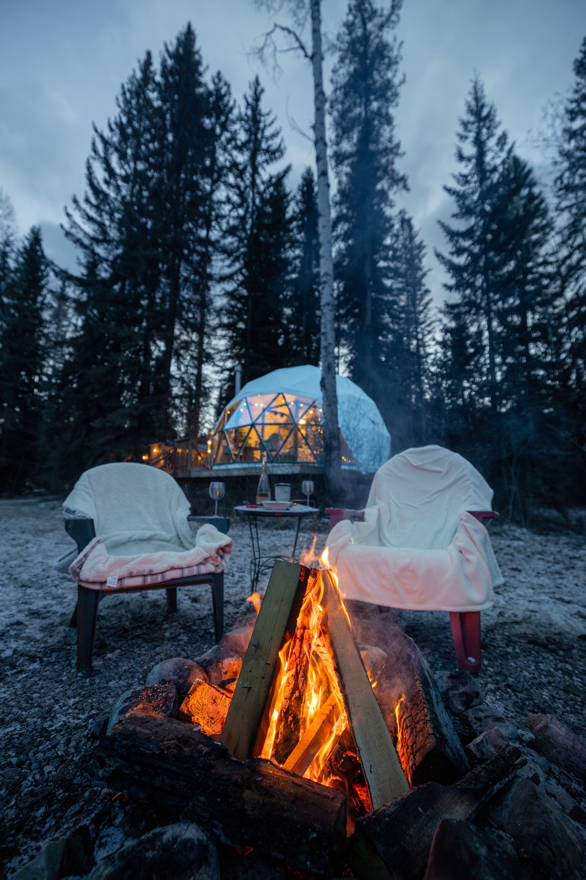 Experience all-season glamping in Alberta’s untouched wilderness. Our lakeside geodome offers unrivaled stargazing & a chance to get off grid. Say goodbye to packing & setting up camping gear – we've got it covered. Spend less time preparing & more time indulging in the enchanting adventure that glamping offers. Inside, plush beds & soft linens ensure comfort. Embrace the uniqueness of your stay in our creatively designed dome, a picture-perfect retreat that promises Insta-worthy memories.