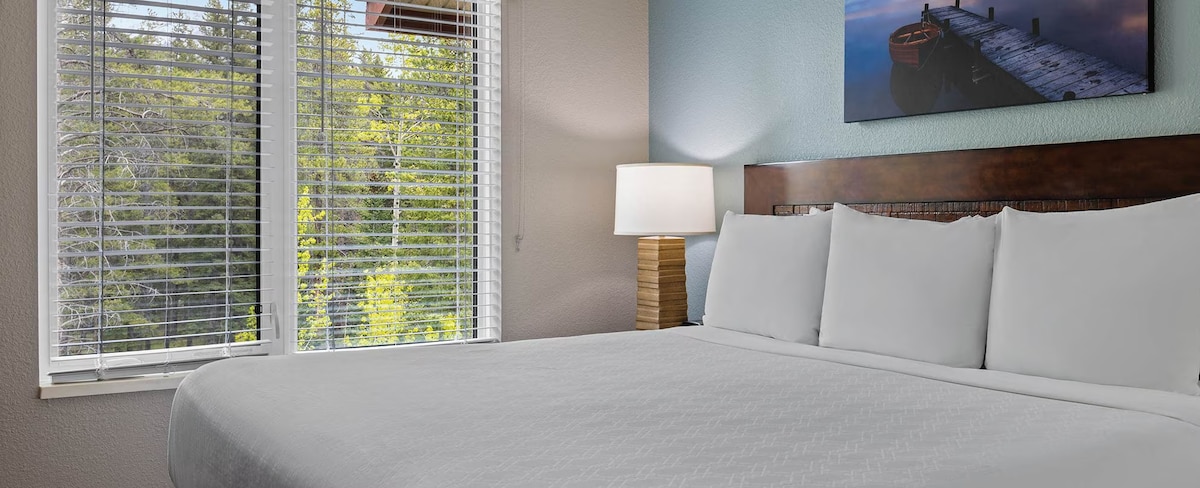 Enjoy this cosy, stylish, upscale place. Legal Air bnb H706091015 Enjoy our private suite with a beautiful lake and resort view. This top top floor suite offers a fridge, microwave, and work station with bedside USB plugins and an upscale memory foam mattress for your perfect sleep. Enjoy access to all of the on-site amenities. Hot tub and gym year round. Two pools with water slide, tennis court area, putting green open May long to October thanks giving weekend.
