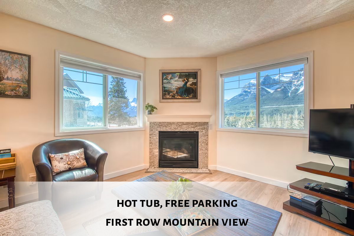 Relax on the private balcony with a cup of coffee as you watch the sunrise over the mountains. And only 1 min away from the Banff National Park gate! This vacation home can accommodate up to 7 adults and 1 kid. - SUPER comfy beds - 100+ TV Channels - In suite Laundry - WIFI - A private balcony with gorgeous mountain views - A gas fireplace - A spacious fully equipped kitchen - Air Conditioners - A huge backyard with BBQ grills(Shared) - Plenty of free onsite parking