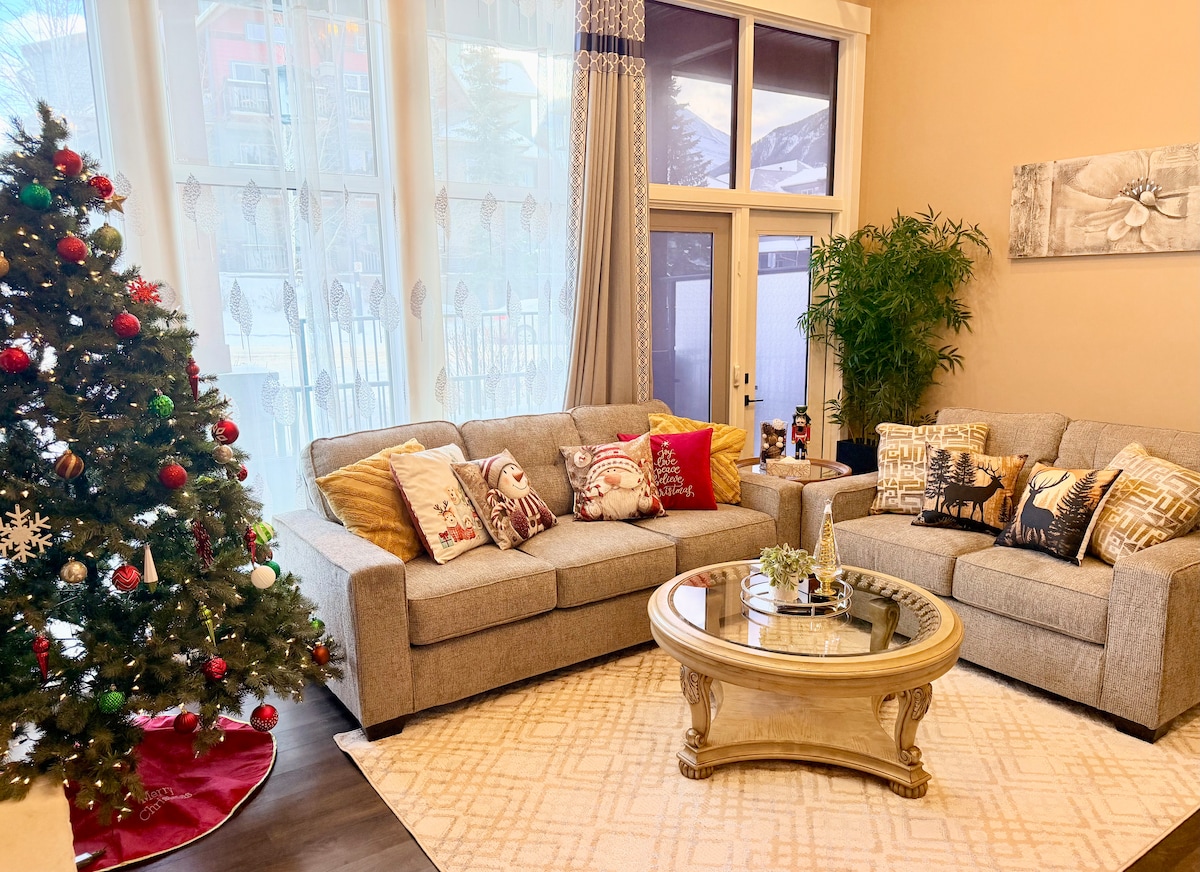 XMAS TREE decorated for holiday celebrations! Enjoy this 4-bedroom, 4-bath luxury home. Centrally located in Canmore, it's within walking distance to all the community offers. Enjoy breathtaking mountain views from nearly every window. The fully equipped open-concept kitchen, dining, and living room features a large fireplace to cozy up by or step out to the private patio with an 8-person hot tub and gas BBQ. A gear garage for bike and ski storage is also included. Pricing is set - No Discounts