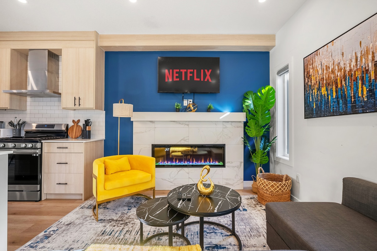 全新1500平方英尺房源,带空调和车库|距离市中心7分钟|可供8人入住