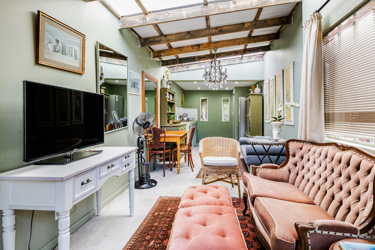 Escape to Industria - an eclectic steampunk studio in lush Hurlingham, just 2 km from Sandton. Industrial charm meets vintage elegance with repurposed decor, metro-tiled bathroom, and nods to 19th century innovation. Enjoy WiFi, solar power, secure parking, a flat-screen TV, and a garden view. The unit features a bath, shower, and convenient kitchenette - perfect for business travellers and curious souls alike. A rare blend of history, comfort, and creative flair in tranquil setting.