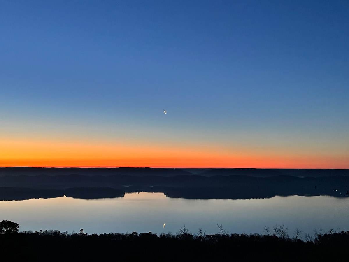 Newly renovated log cabin with amazing sunrise views from a ridge above Waterfront Bay & the main channel. Halfway between Guntersville and Scottsboro. Just 1 1/2 miles to the boat launch and store at Waterfront. Places close by-Goosepond, Cathedral Caverns, Cavern Cove shooting range, G'ville St. Park, zip-lines. 8x40 covered deck, patio w/firepit, gas & charcoal grills, corn hole, darts, two hot tubs, five kayaks, one canoe w/gear, and a trailer. Dogs welcome (but no fence). Relax & enjoy!