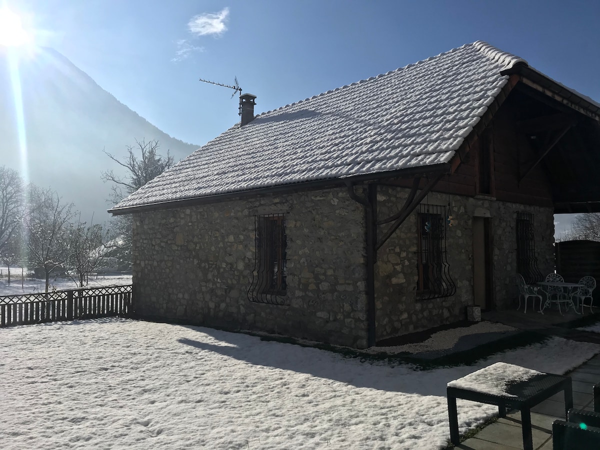 Petit chalet de charme longeant un petit ruisseau de pêche. A l'arrière vous pourrez profiter d'une terrace intime à l'orée du bois et devant d'une vue panoramique sur la chaîne de La Lauzière. 2 adults maximum - pas d'enfants. Les repas peuvent être fournis sur commande.