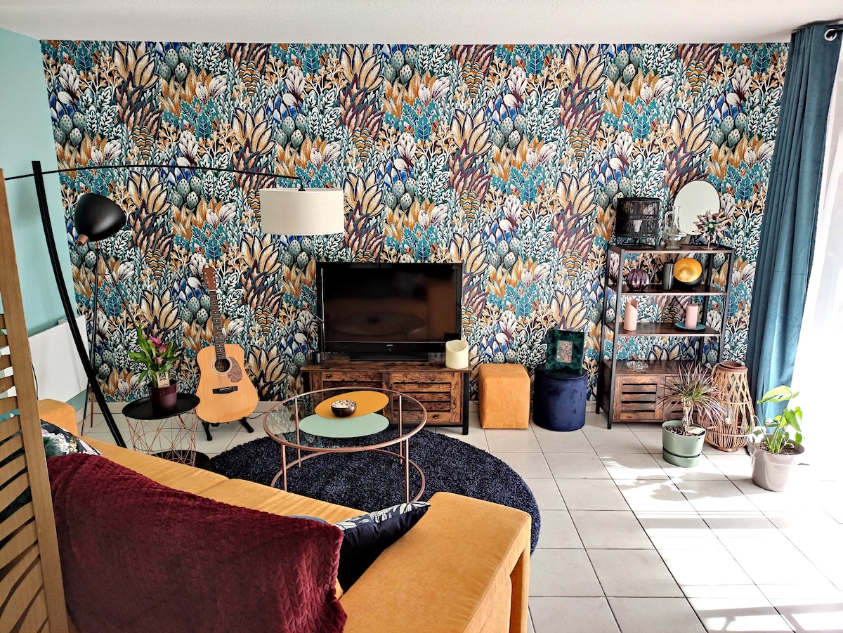 Annulation gratuite / arrivée autonome. 💎Pour une nuit, un week-end ou plus, bienvenue dans notre appartement calme, élégant et tendance, entièrement rénové (et sur-équipé !). Draps et serviettes sont fournis✌🏻 Idéal pour 2 personnes, il peut accueillir jusqu'à 4 personnes grâce au canapé convertible du salon👍🏻 Le + : Le balcon côté jardin, exposé pleine lumière et sans vis-à-vis, pour vos repas et petits déjeuners.