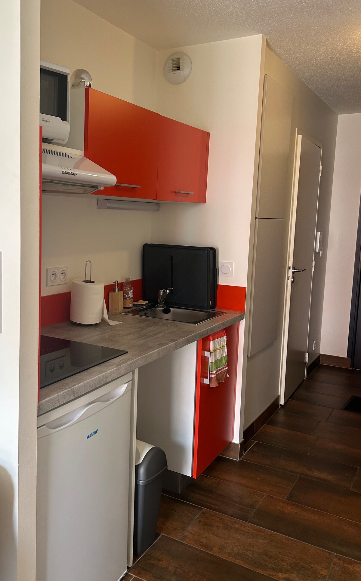 Coquet T2 climatisé situé à 5 minutes à pied du cœur de la cité Épiscopale d'Albi. Vous logerez dans un appartement résidentiel composé de : - une grande chambre avec un lit en 140/190, un double placard penderie (suffisamment d'espace pour un lit bébé mais non fourni) - une kitchenette équipée: plaques de cuisson, petit frigo, micro-ondes, cafetière, - un salon avec clic-clac et télévision, - une salle de bain et un WC séparé (serviettes de toilettes non fournies), - pas de WIFI désolé :)