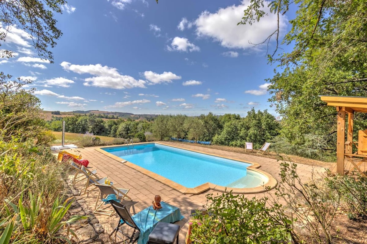 Dans la campagne graulhetoise, avec vue exceptionnelle sur les champs, notre gite vous attend. Venez profiter de la sérénité et du calme sans vis-à-vis. La piscine (10x4) sécurisée sera un plus pour vos vacances d'été. Composé d'une cuisine aménagée et équipée, d'une cuisine d'été avec plancha, d'un patio, et de 2 chambres, notre gîte est prêt pour vous accueillir. A 15mns de Gaillac, 20mns d'Albi, 1 h de Toulouse et 1h45 de Carcassonne. La mer à 2H30.
