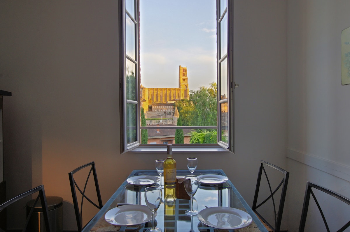 L'INCROYABLE VUE vous accueille dans son ambiance pensée pour votre confort et avec sa vue PANORAMIQUE IMPRENABLE sur l'ensemble épiscopal. L'Appart est SPACIEUX, FONCTIONNEL et TOUT EQUIPE. Incroyablement bien situé : 5 minutes à pied du centre-ville en traversant le Pont Vieux avec une vue unique sur la CATHEDRALE ! PARKING PRIVE GRATUIT.