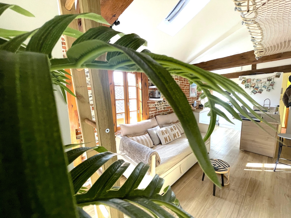 Appartement au cœur du centre-ville d'Albi, sur la place du Vigan. Beaucoup d'originalité, pour que vous passiez du bon temps dans notre magnifique ville d'Albi. Appartement tout équipé, au troisième et dernier étage : une cuisine toute aménagée, une salle à manger autour d'un bon feu de bois, un coin bureau, un salon cooconing, avec un canapé convertible et une belle chambre originale avec sa salle de bain et son dressing. Logement climatisé, et équipé de la WIFI. C'est l'adresse idéale !