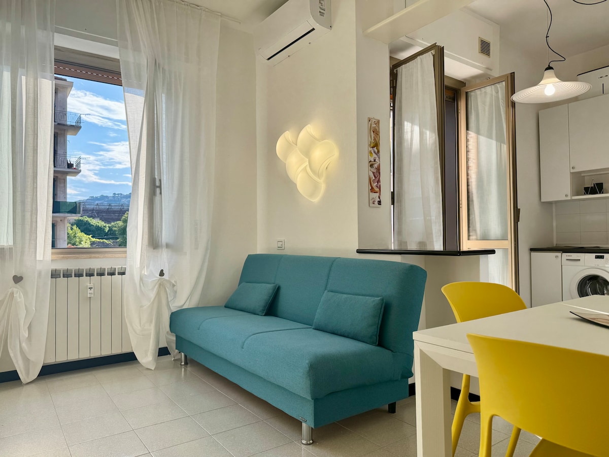 Incantevole appartamento privato a Recco, sito al piano superiore di una caratteristica casa rustica ristrutturata nel 2017. Parcheggio privato con accesso diretto al vialetto di ingresso; bagno con doccia; zona giorno ampia e luminosissima con divano letto, cucina e balcone con completa vista mare; piano superiore con camera da letto, armadio, scrivania e cassettiera. La casa dispone di un ampio terrazzo oltre che di un giardino. L'ingresso indipendente consente il distanziamento sociale.
