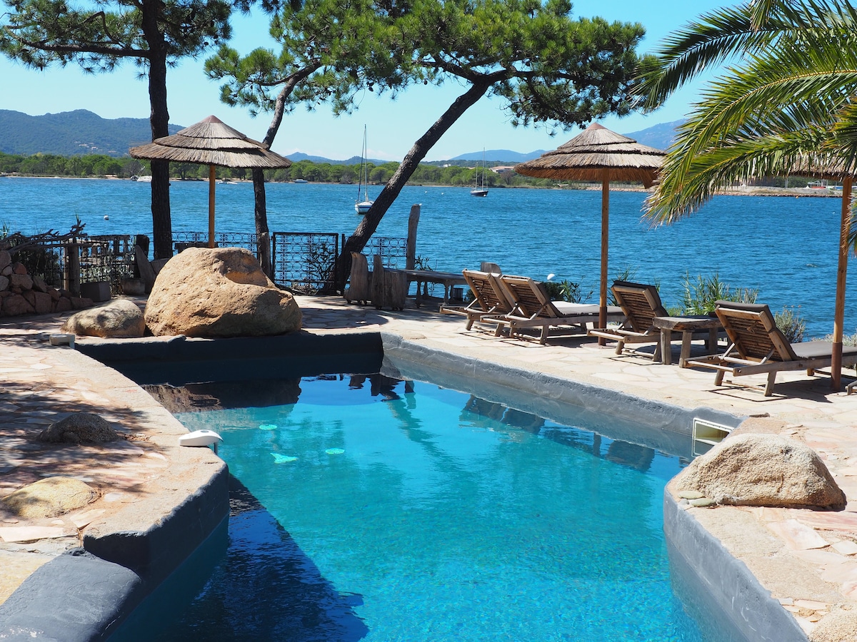 1 room studio for 2 adults (we have a second larger studio 35 m² that can accommodate a third person, child, for example) in a private property at 20/30 meters from the sea, beach 100 meters of the Gulf of Porto Vecchio. Quiet, with garden, 2 pools and sea canoes. Amazing view, shaded terrace with stone barbecue. Washing machine, flat screen, bathroom with toilet. Aircon, wifi and parking. Exceptional and rare!