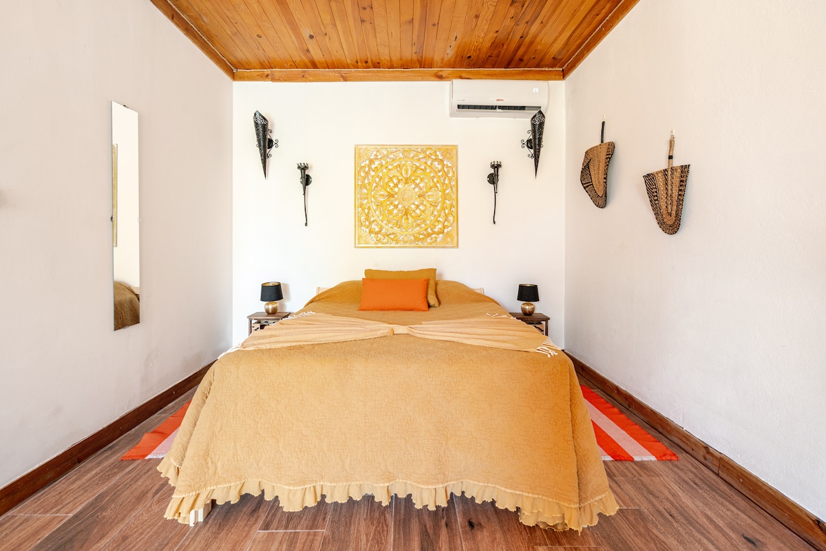 1 bedroom with double bed in your own private small house at Casa Mariposa - just minutes from the beaches and downtown Carvoeiro. Enjoy easy access to popular shops & restaurants from this very charming place to stay. Swimming Pool & Tennis Court access are also included. Guest amenities include outside chairs & table and a roof-top lounge with ocean-views and more. Water, coffee & tea are included. Spoil yourself at Casa Mariposa - Delightfully quiet yet right in the heart of the city.
